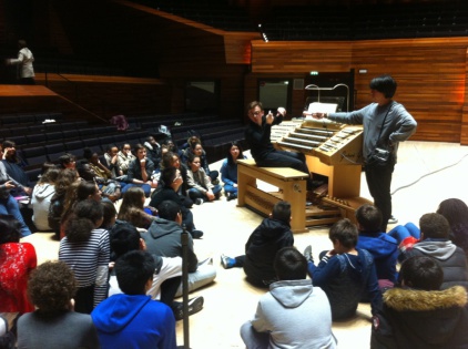 Le Paris des Orgues propose cette année à des collégiens de Paris une activité de découverte de l'orgue. Ce lundi 27 février 2017, cinquante élèves de 5ème des collèges du 10ème arrondissement ont été reçus à l'Auditorium de Radio France par Thomas Ospital, artiste en résidence, qui leur a dévoilé de façon vivante tous les mystères du grand orgue Grenzing. D'autres séances de ce type auront encore lieu à Radio France.
